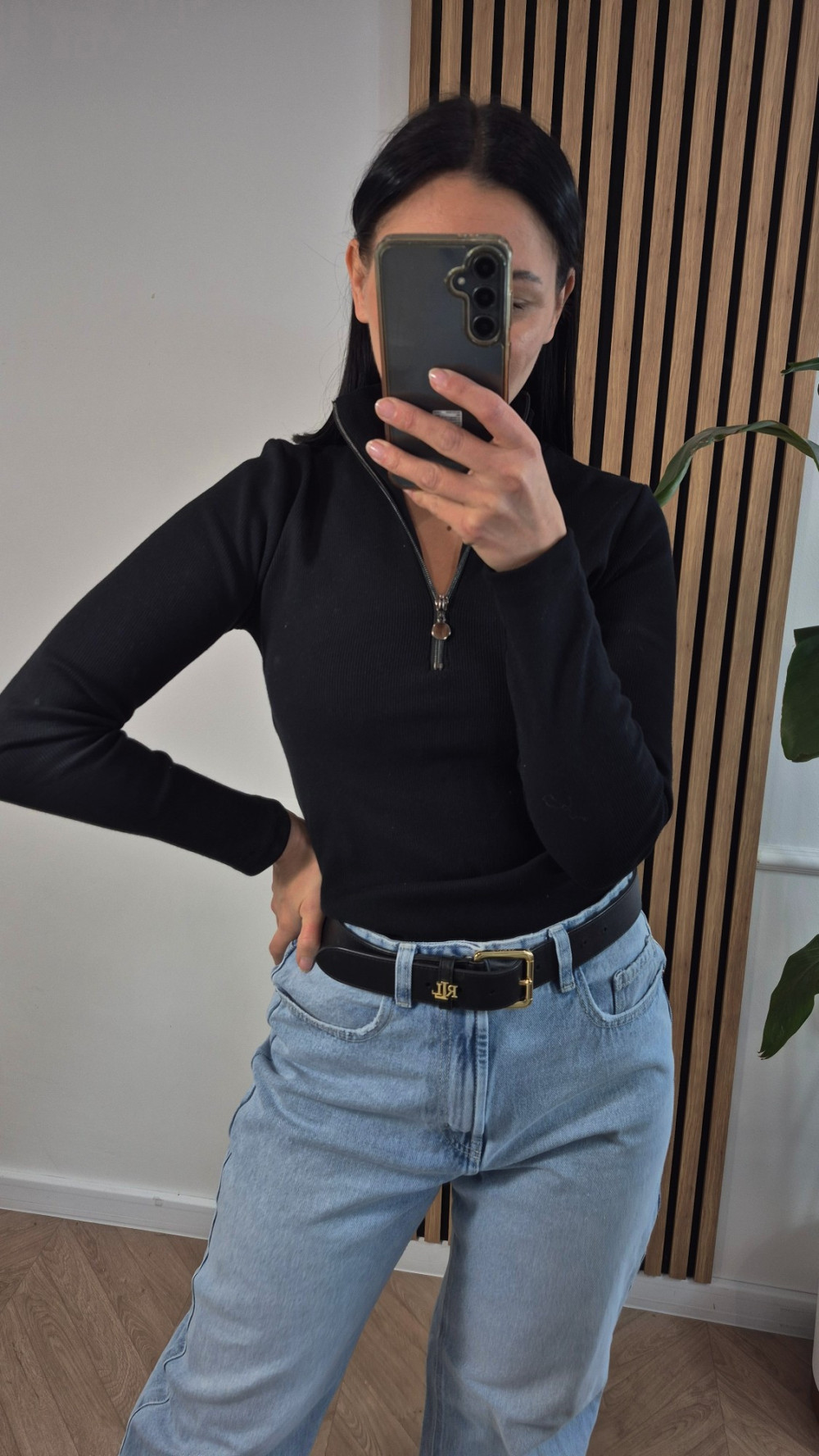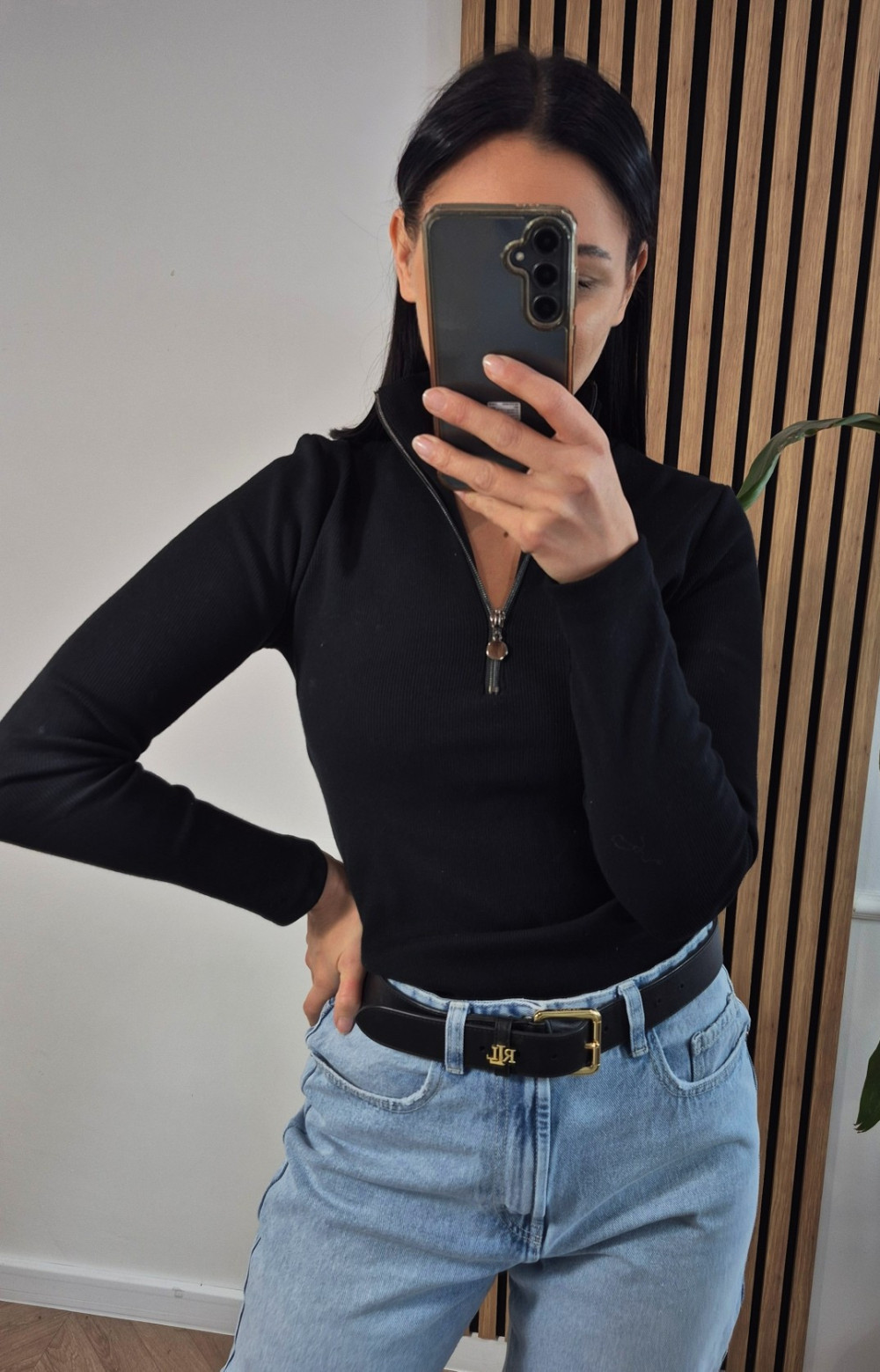 bluzka z suwakiem czerń prążek