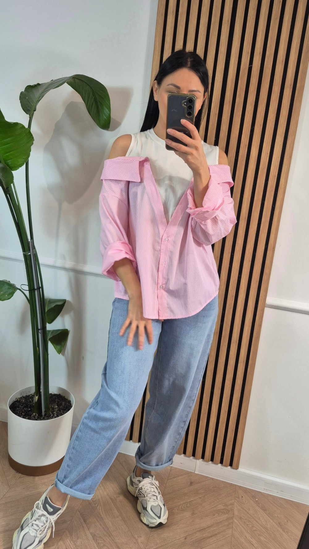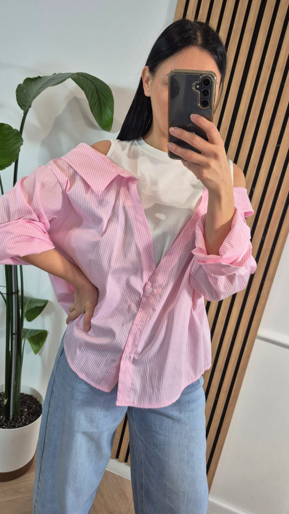 Koszula z łączonych materiałow róż