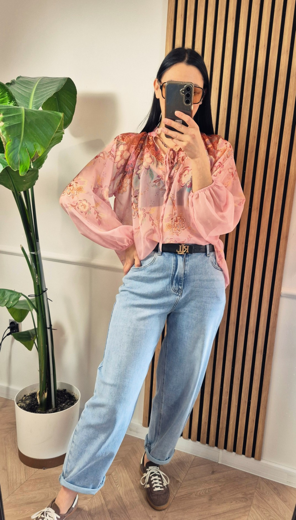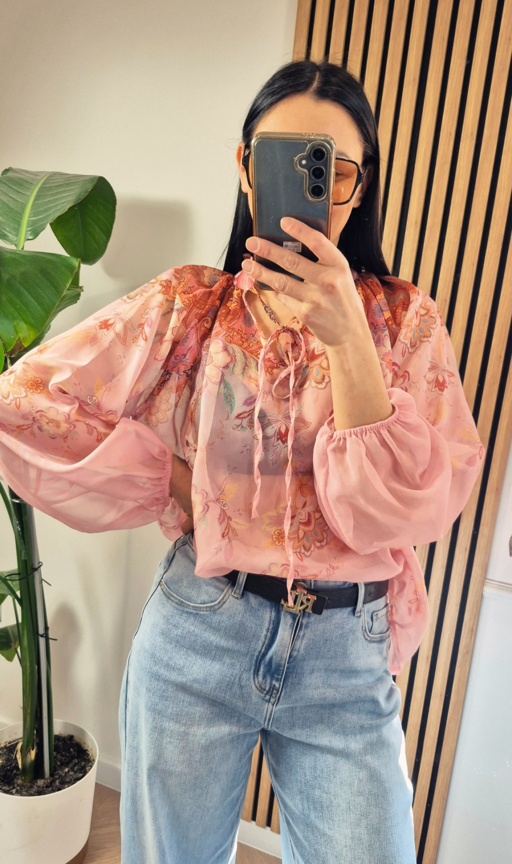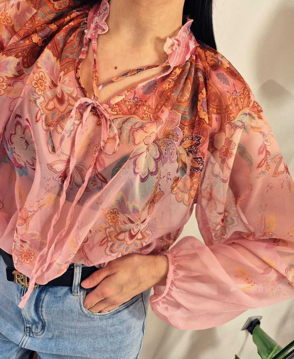 Bluzka koszulowa boho róż